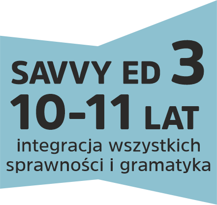* Alternatywnym sposobem realizacji treści poziomu Savvy Ed 1 są poziomy połówkowe Savvy Ed 1A i 1B. Materiał z poziomu SE 1 realizowany jest tam przez dwa lata, co umożliwia dostosowanie tempa pracy do indywidualnych potrzeb dzieci. Po ukończeniu poziomu 1B, kursanci kontynuują naukę na z poziomie Savvy Ed 2.